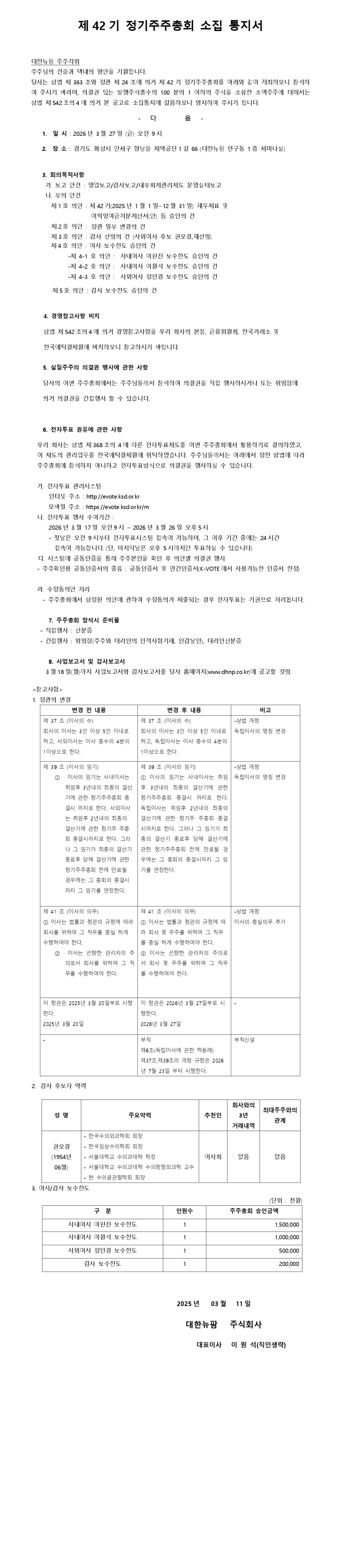 제42기 정기주주총회 소집 공고