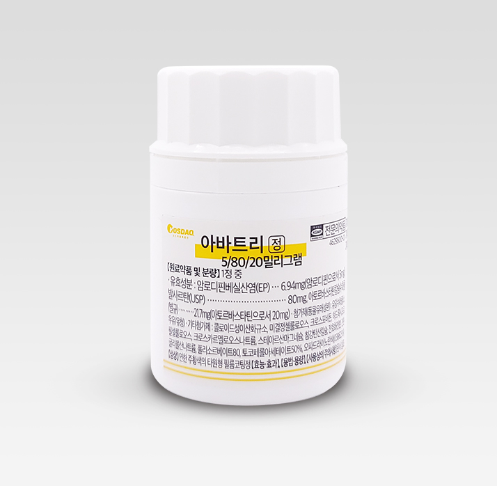 Amlodipine besylate 6.94mg(as Amlodipine 5mg) /Valsartan 80mg /Atorvastatin Calcium Hydrate 21.7mg(as Atorvastatin 20mg)