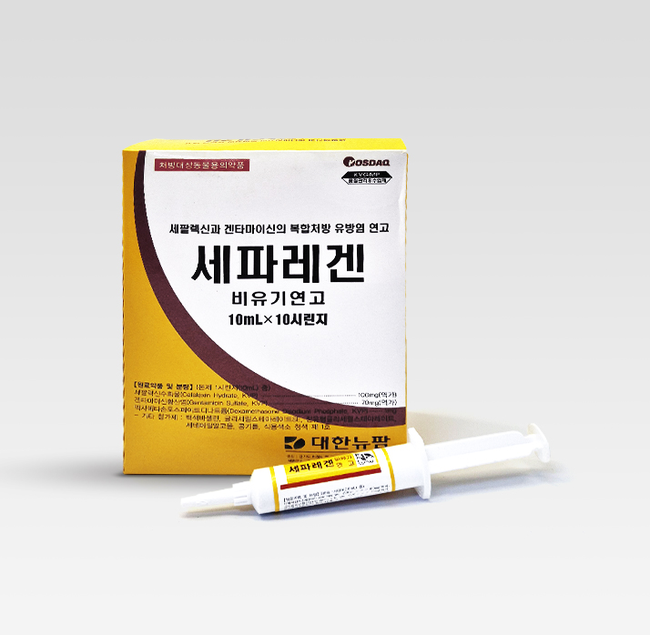 - 각종 유방염 원인균에 대해 감수성이 특히 우수한 세팔렉신과 겐타마이신의 복합제